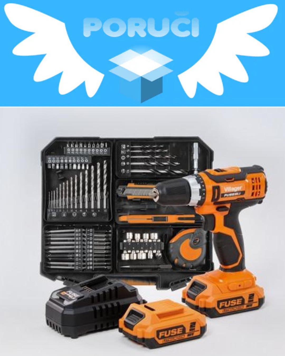 Villager FUSE Set VLN 3220 Bušilica/Odvijač + 2 Baterije 2.0Ah + Punjač 2.4A + Pribor 74 komada