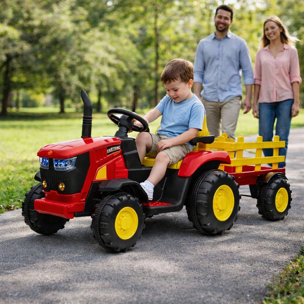 Ovaj traktor predstavlja vrhunsko iskustvo vožnje, osmišljen s posebnom pažnjom na detalje koji donose radost i autentičnost. Idealno je rešenje za mališane koji žele da uživaju u vožnji uz sve sigurnosne i komforne karakteristike.