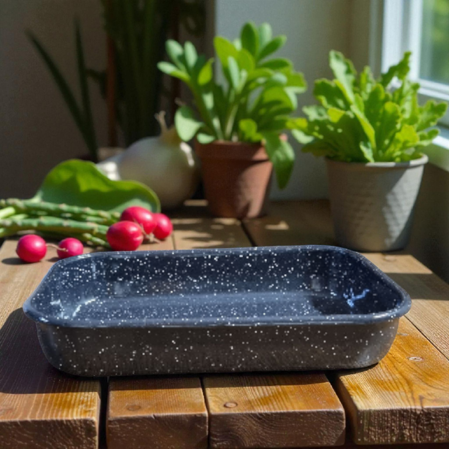 Emajlirani premaz ne rđa, ne upija mirise i lako se čisti, što je čini izuzetno praktičnom za svakodnevnu upotrebu. Savršena je za rernu, šporet ili pripremu velikih obroka za goste, porodicu i proslave.