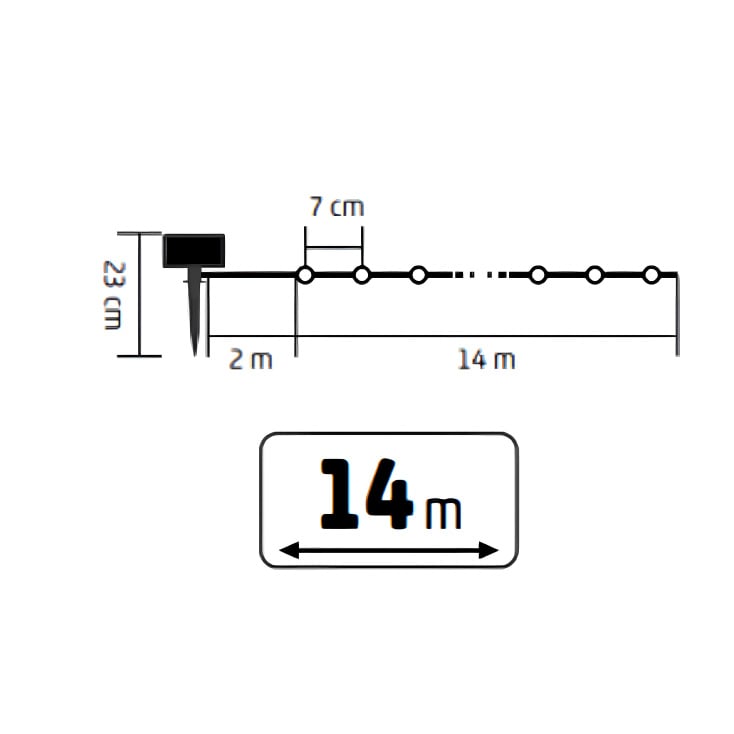 Solarni LED niz 14m, 200 hladno belih dioda SLC200WH
