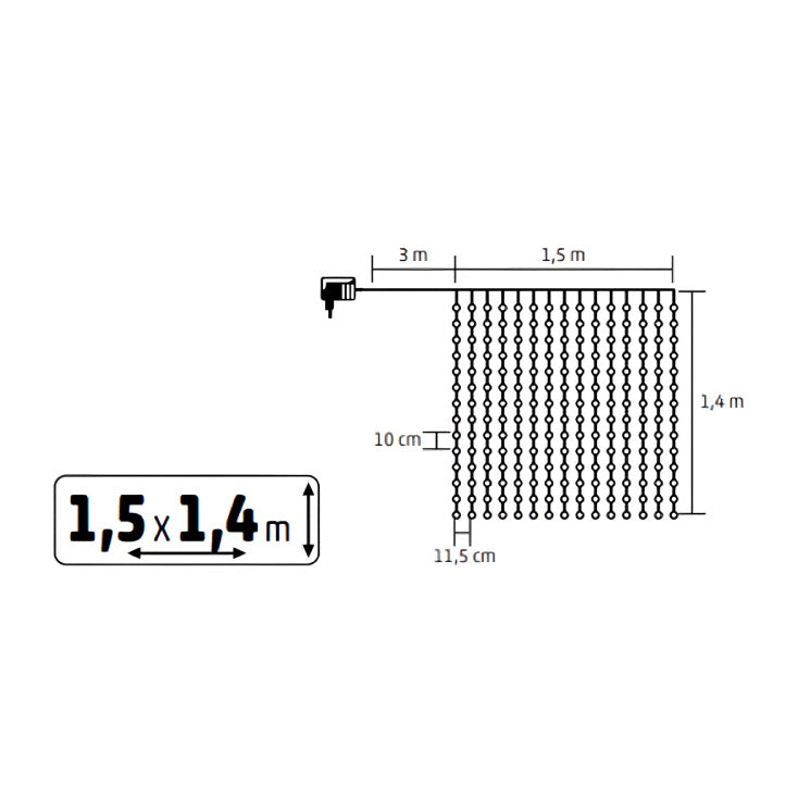 Pokriva površinu 1,5 m širine i 1,4 m visine, zahvaljujući 15 niti sa po 14 LED dioda